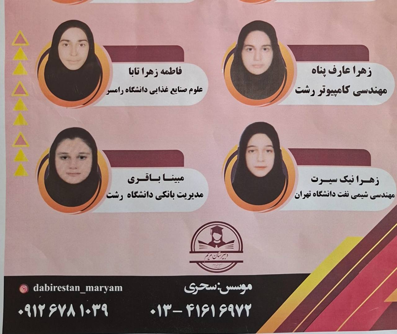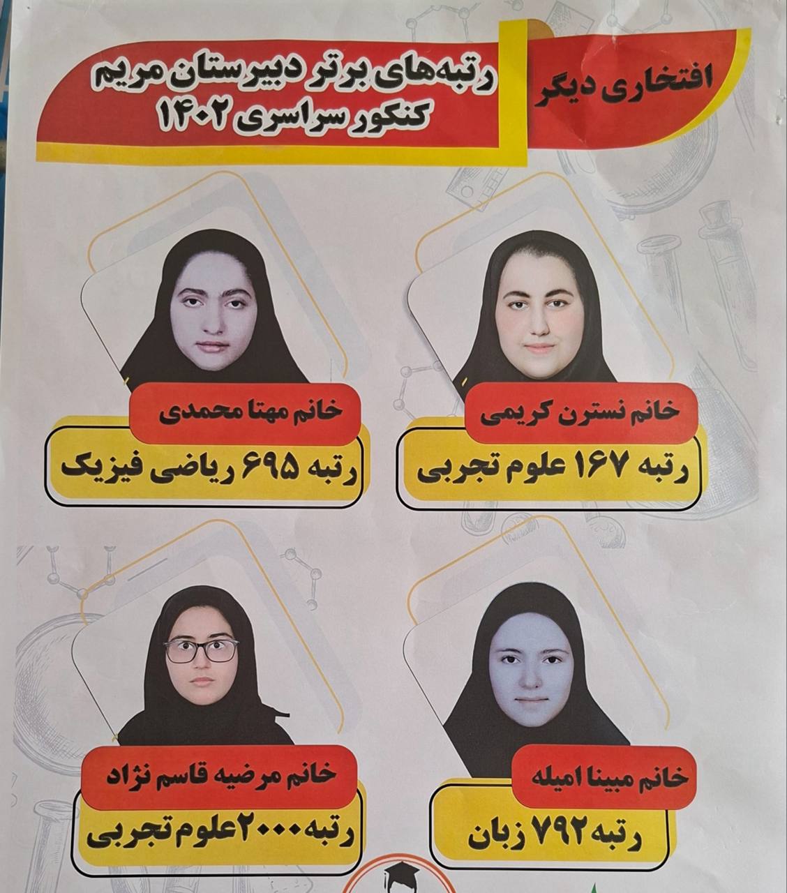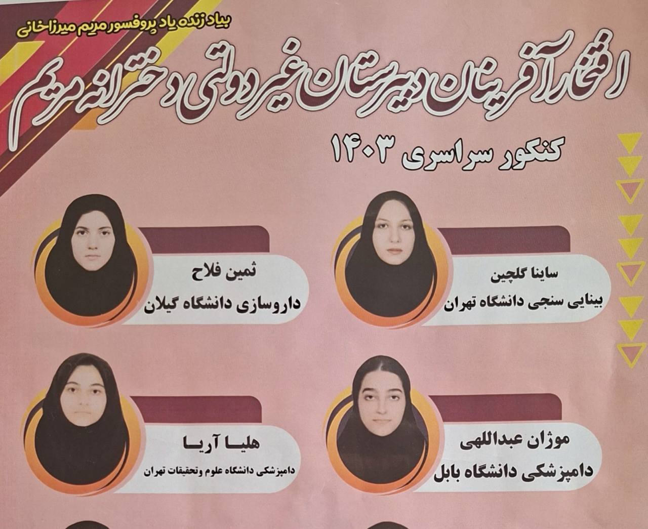 افتخار آفرینان کنکور سراسری سال های ۱۴۰۰ تا ۱۴۰۳ دبیرستان مریم